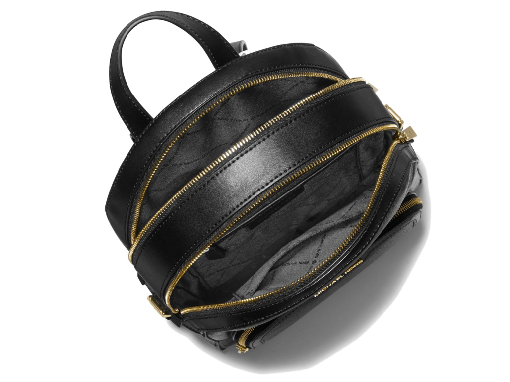 Michael Kors Batoh Rhea Medium Pebbled Leather Backpack Black Gold