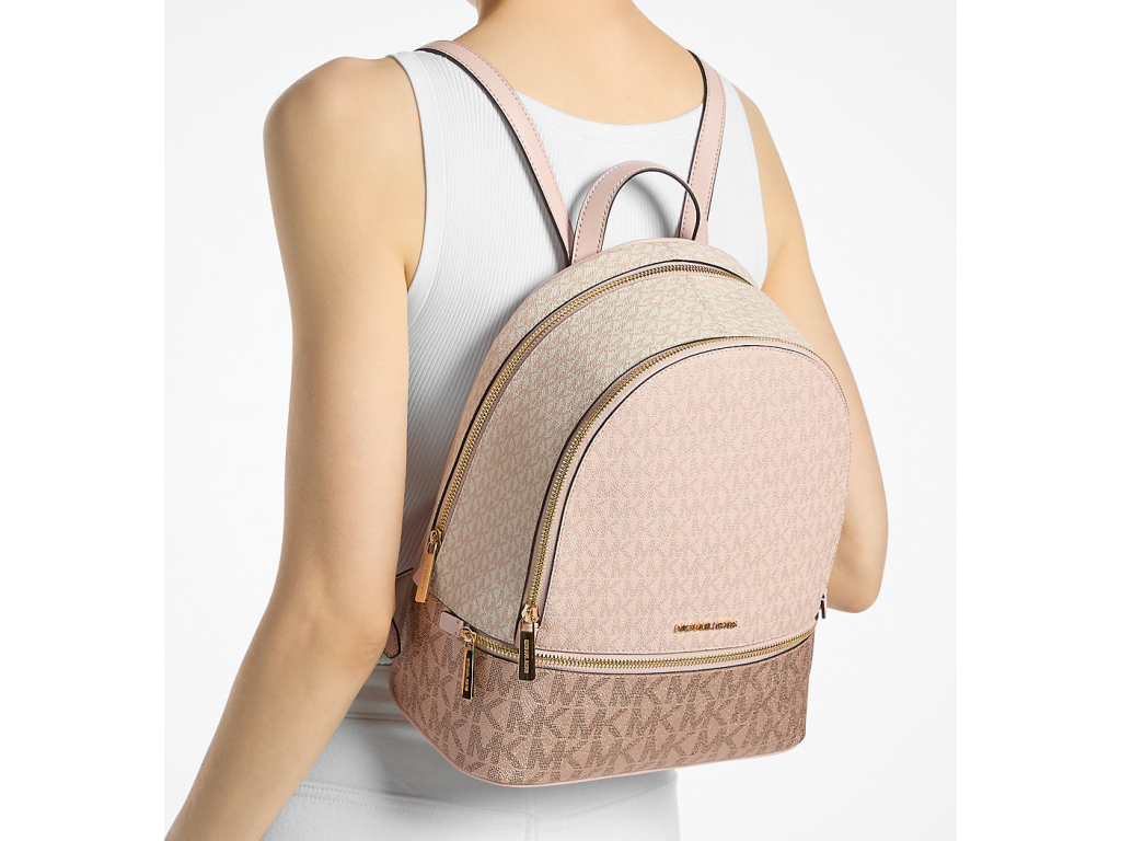 Plecak Michael Kors Rhea Medium Metallic Signature Logo Backpack Powder Blush