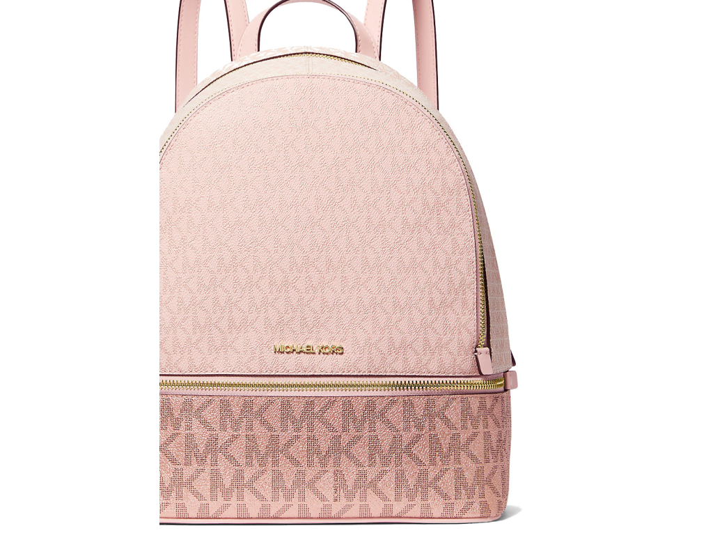 Michael Kors Batoh Rhea Medium Metallic Signature Logo Backpack Powder Blush