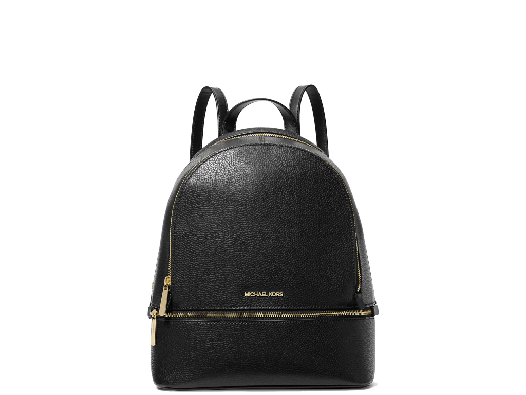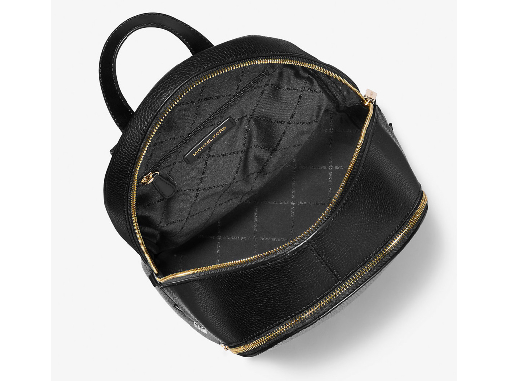 Michael Kors Batoh Rhea Medium Pebbled Leather Backpack Black Gold