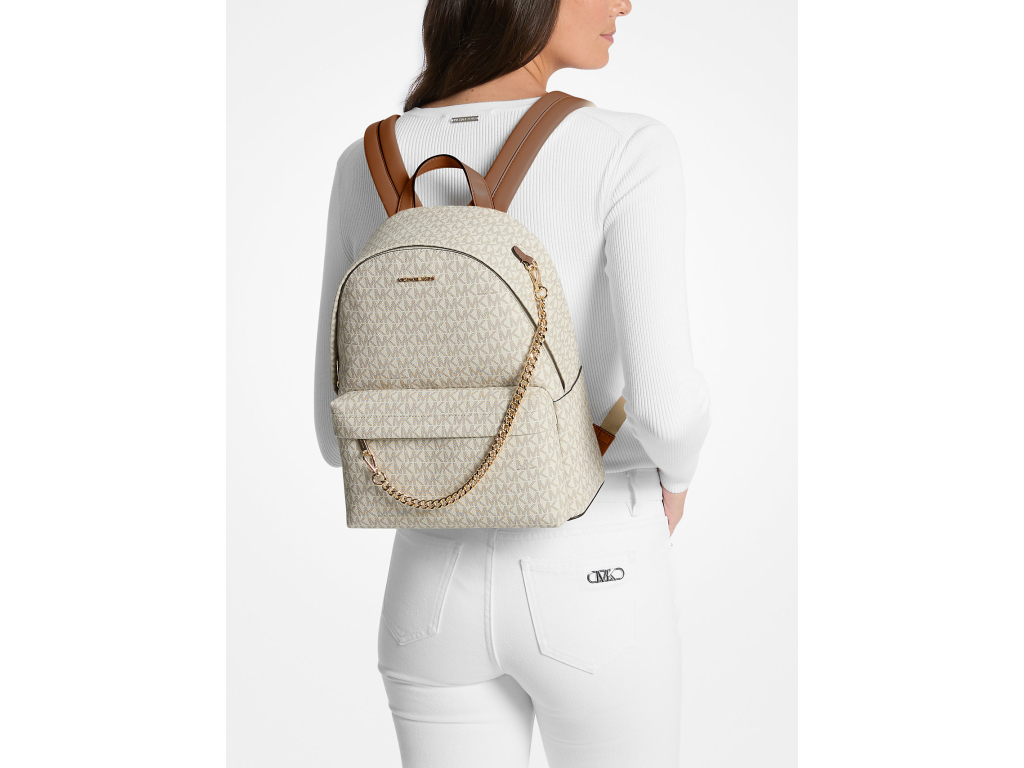 Michael Kors Batoh Slater Medium Signature Logo Light Cream Multi