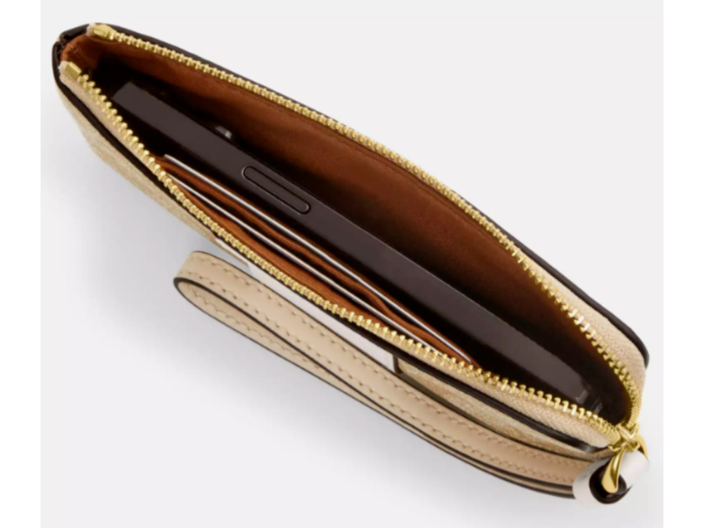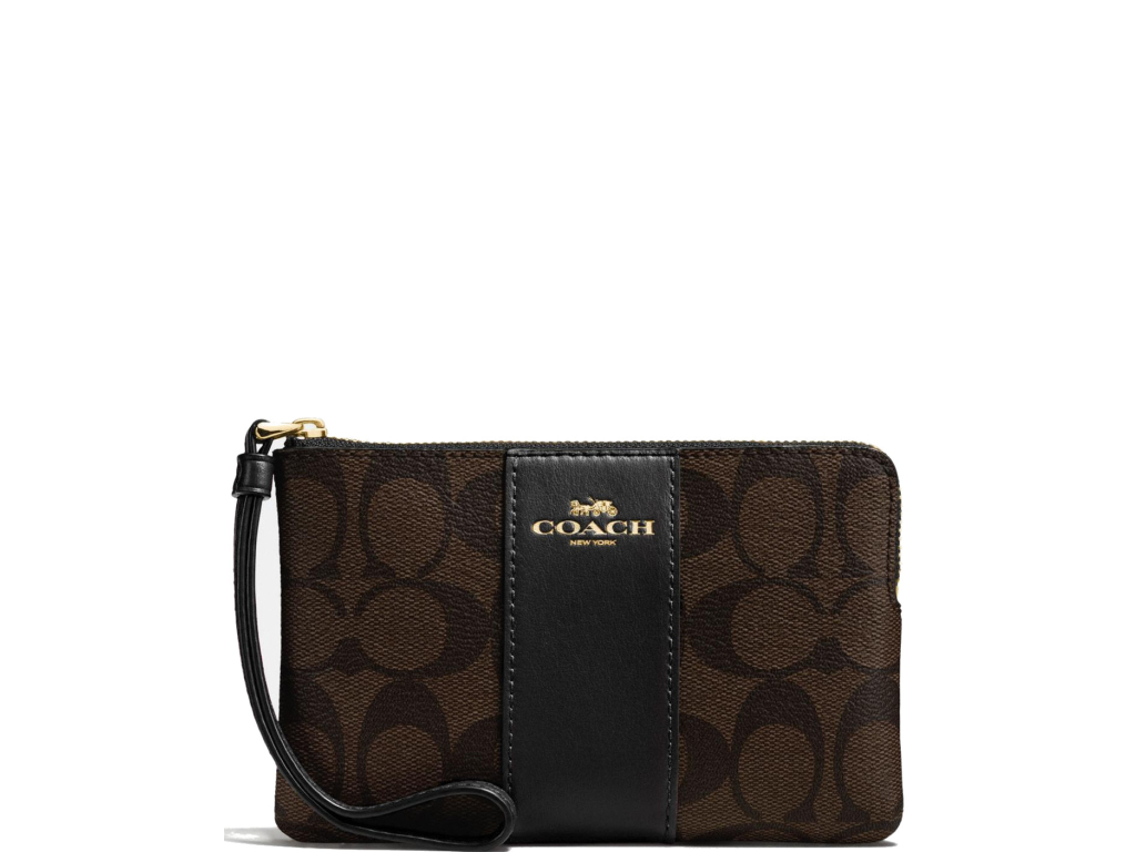 Portfel Coach Corner Zip Wristlet z Signature Canvas Brown Black Light Gold