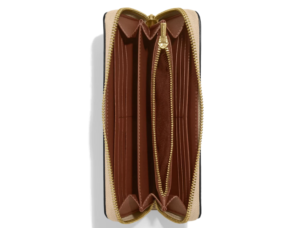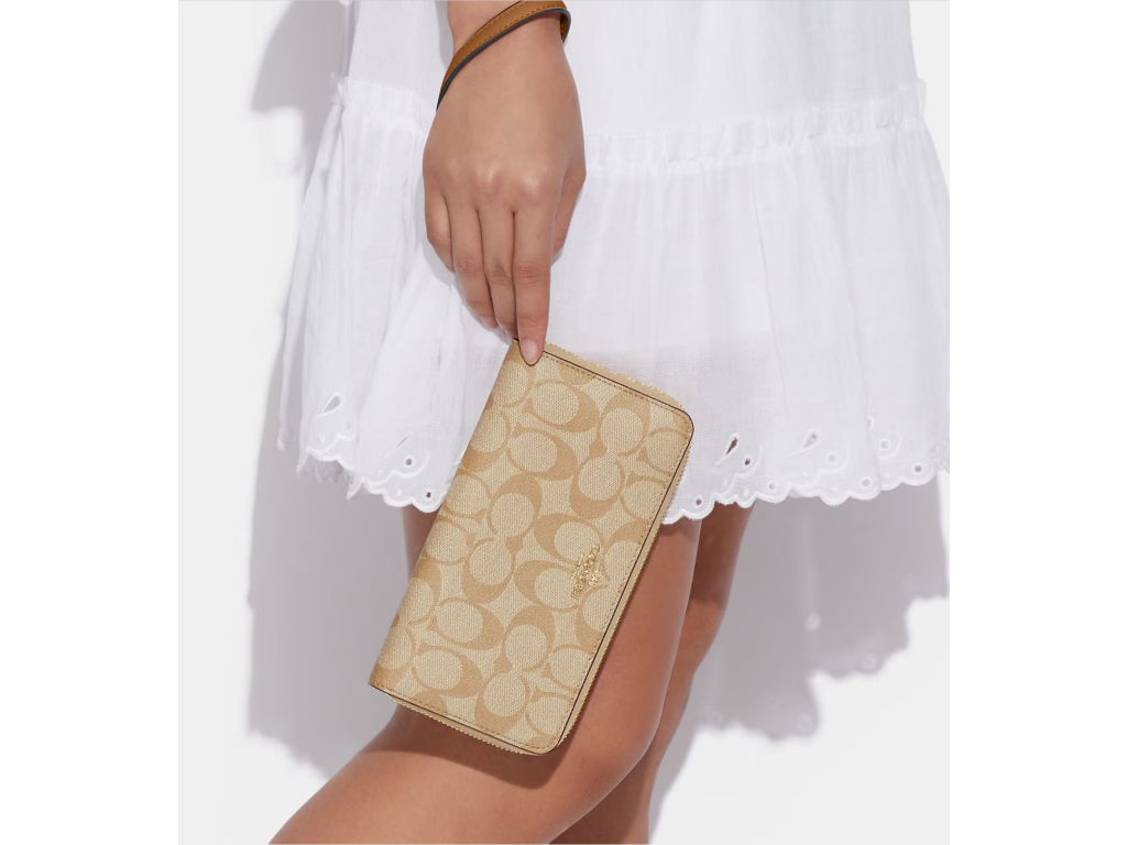 Coach Peněženka Zip Around Signature Canvas Light Khaki Light Saddle