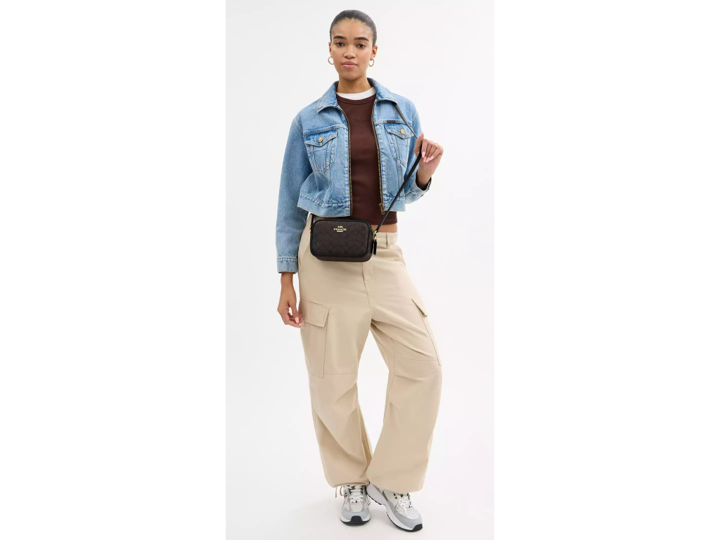 Torba fotograficzna COACH Mini Jamie z płótna Signature w kolorze złotym i orzechowym
