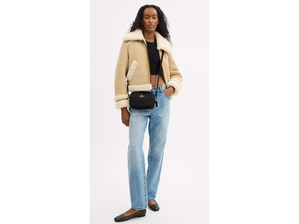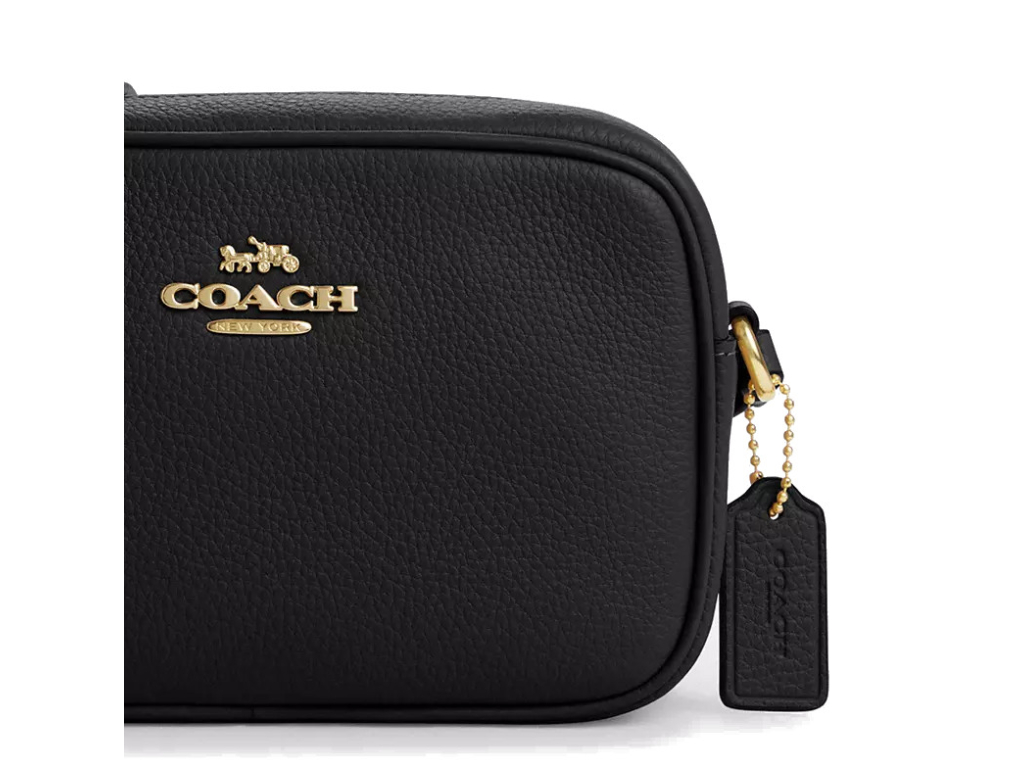 Torba fotograficzna COACH Mini Jamie, skóra groszkowana, złoto-czarna