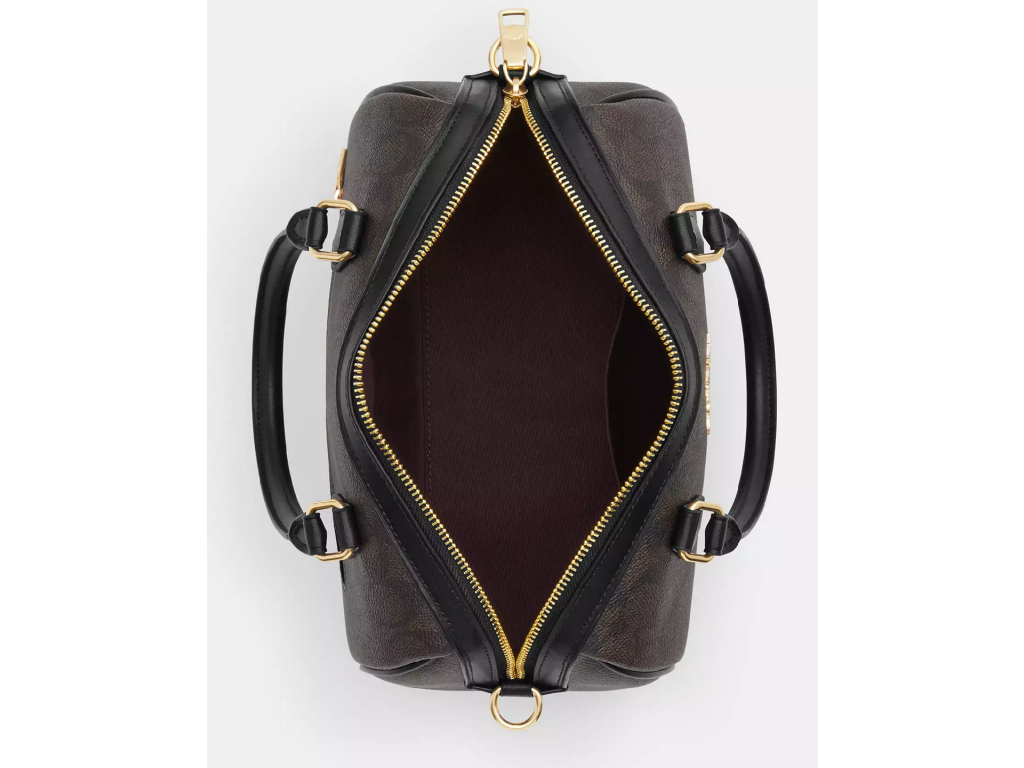 COACH Kabelka Rowan Satchel Bag In Signature Canvas Gold Walnut Black