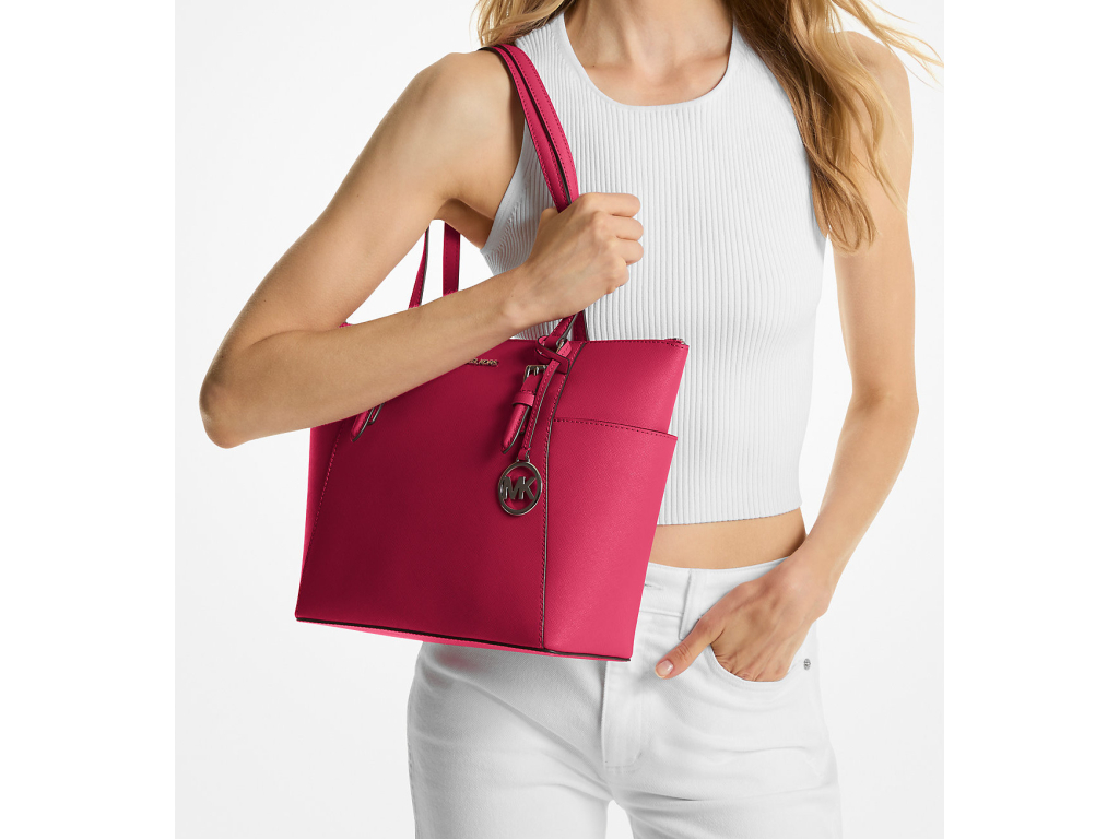 Michael Kors Kabelka Charlotte Large Saffiano Leather Top-Zip Tote Bag Raspberry