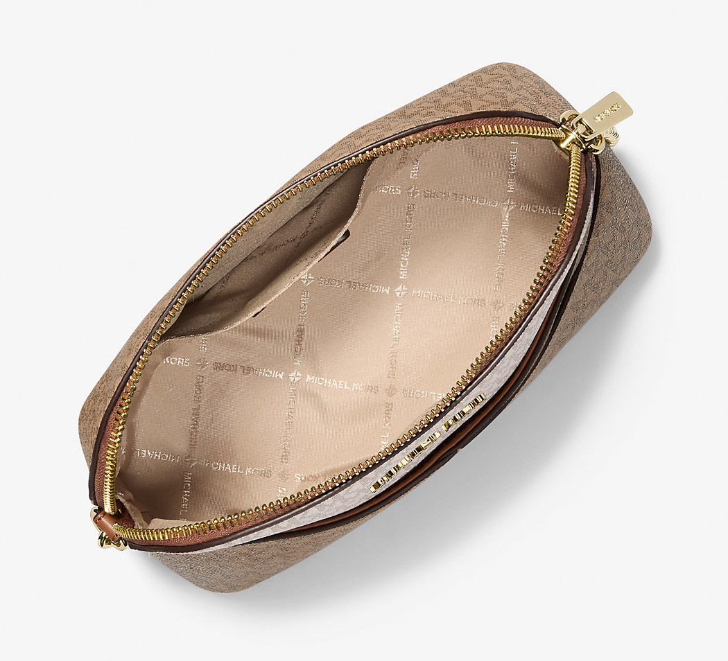 Michael Kors Jet Set Large Metallic Signature Logo Crossbody Bag Brown