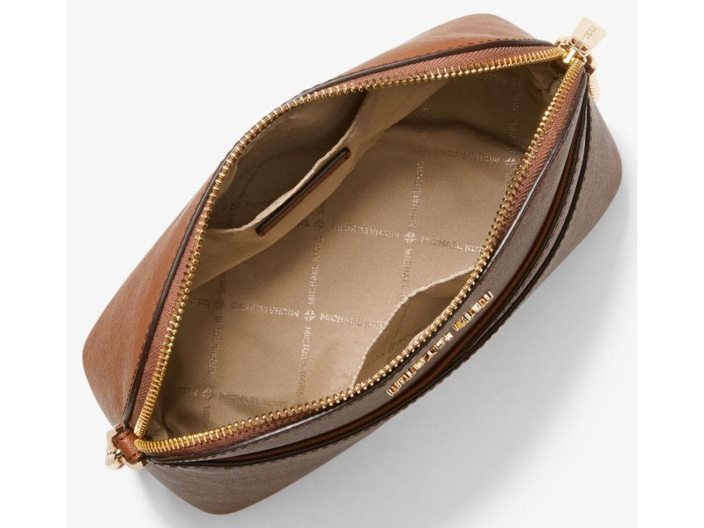 Michael Kors Jet Set Large Metallic Signature Logo Crossbody Bag Brown