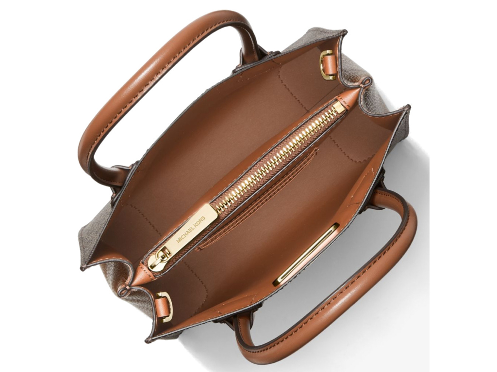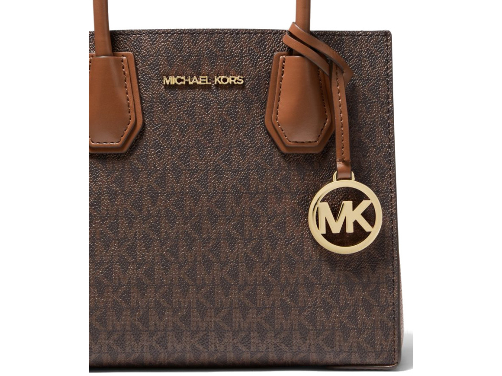 Michael Kors Mercer Średniej Skórzanej Torebki na Ramię z Logo i Akordeonem, Brązowa